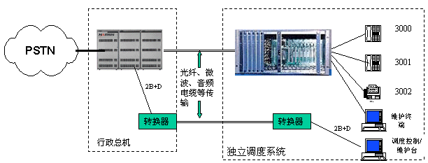 適用范圍:這種應用適用于對電話系統(tǒng)安全性要求嚴格的場合,如電力系統(tǒng)行政交換機與調度交換機就可以以上述方式實現(xiàn)備份,從而實現(xiàn)行政或調度交換機某一臺不能工作時,依然可以通過備份系統(tǒng)打電話。