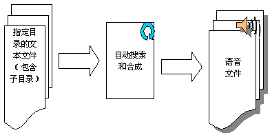系統(tǒng)功能實現(xiàn)示意圖如下圖,離線合成系統(tǒng)可以自動搜索指定目錄(可包含子目錄)的文本文件,并按指定的規(guī)則生成相應(yīng)的語音文件。