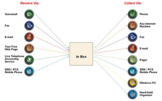 Ø 由固定/移動電話運營商、ISPs 以及ASPs提供服務。服務包括單一信息通知到完全統(tǒng)一信息。用戶可將其所有類型的信息存儲在一個信箱中并且通過電話或網(wǎng)絡瀏覽器獲取。