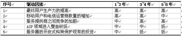 下表顯示了ASP統(tǒng)一信息服務市場的驅(qū)動因素