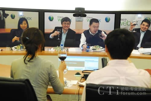 CTI論壇(ctiforum)5月6日消息(記者 楊佳林):中國,北京,2010年4月28日:無需像德國國防部長古滕貝格那樣駕車行駛3000多公里長途奔襲,跨越太平洋也一樣享受零距離的午餐。思科中國首席技術官梁永健、思科中國區(qū)副總裁華東區(qū)總經(jīng)理陳葵、思科WebEx研發(fā)及協(xié)作軟件全球副總裁袁征今天通過思科的網(wǎng)絡會議技術和中國知名博主在北京、上海和舊金山三地共進午餐。