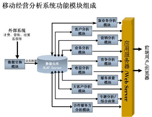 。。在多年業(yè)務(wù)支撐系統(tǒng)(BSS/OSS)的建設(shè)中,電信運(yùn)營(yíng)商積累了大量的原始業(yè)務(wù)數(shù)據(jù)。這些數(shù)據(jù)涉及到客戶發(fā)展、市場(chǎng)營(yíng)銷、業(yè)務(wù)收入、銷售渠道、網(wǎng)絡(luò)優(yōu)化、網(wǎng)絡(luò)規(guī)劃等各種方面,如何才能快速地從中提。z索、查詢)信息,深層次發(fā)掘隱藏在客戶數(shù)據(jù)和業(yè)務(wù)數(shù)據(jù)中的內(nèi)在規(guī)律,及時(shí)把握業(yè)務(wù)發(fā)展的趨勢(shì),對(duì)業(yè)務(wù)發(fā)展進(jìn)行前瞻性分析預(yù)測(cè)以制定相應(yīng)的市場(chǎng)策略,對(duì)市場(chǎng)機(jī)會(huì)做出及時(shí)、靈活的反應(yīng),成為電信運(yùn)營(yíng)商在信息時(shí)代的市場(chǎng)競(jìng)爭(zhēng)中立于不敗之地的關(guān)鍵所在。