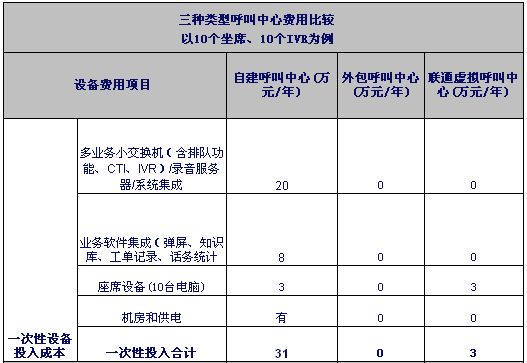 注1:自建和外包呼叫中心按目前市場(chǎng)平均價(jià)計(jì)算。虛擬呼叫中心按聯(lián)通標(biāo)準(zhǔn)資費(fèi)計(jì)算。外包坐席按裸坐席計(jì)算。