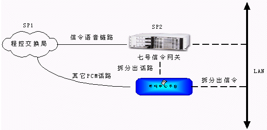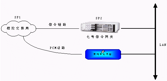 從程控端局送出來的信令和話路通過不同的PCM傳輸,信令鏈路接到七號信令網關轉換,通過消息方式傳遞到呼叫中心平臺,而話路則直接通過PCM線連接到電信平臺上進行話路連接。這種方式結構明晰,有利于系統(tǒng)管理,大大增強了系統(tǒng)容量的擴展能力。