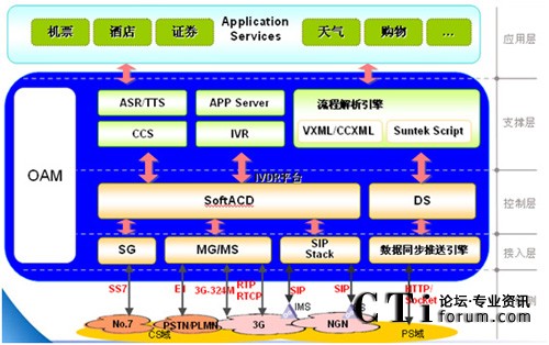 流程解析引擎支持VXML及SUNTEK Script流程語(yǔ)言,通過(guò)SCE集成開(kāi)發(fā)環(huán)境,可以方便地定制開(kāi)發(fā)動(dòng)態(tài)語(yǔ)音流程。除實(shí)現(xiàn)IVR功能外,還可以通過(guò)數(shù)據(jù)鏈路同步向用戶的終端推送數(shù)據(jù),并通過(guò)終端軟件的解析后展現(xiàn)在客戶面前。
