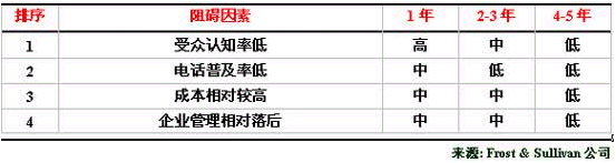 表三羅列了制約中國外包呼叫中心服務(wù)市場(chǎng)發(fā)展的主要因素。