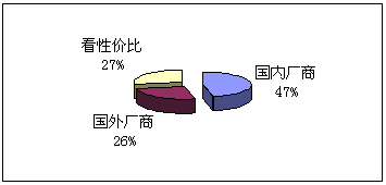 。5)向誰購買:鑒于國內(nèi)并沒有知名度很高的CRM實(shí)施廠商,而國外的著名廠商在國內(nèi)的品牌宣傳也不足,所以我們的調(diào)查表中只設(shè)了:國內(nèi)廠商、國外廠商和根據(jù)性價(jià)比進(jìn)行選擇三個(gè)項(xiàng)目,與購買能力對(duì)照,預(yù)期實(shí)施金額在100萬以下的企業(yè),一般側(cè)重國內(nèi)廠商,而實(shí)施金額在100萬以上企業(yè)則側(cè)重國外企業(yè)。