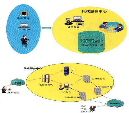 民政社區(qū)服務中心利用CTI技術、網(wǎng)絡技術、數(shù)據(jù)庫技術、WEB技術及多種接入方式:電話、呼叫器、傳真、互聯(lián)網(wǎng)、移動互聯(lián)網(wǎng)、手機等,為廣大居民提供便捷、優(yōu)質的社區(qū)服務。