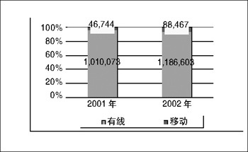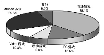 各種類型游戲在整個(gè)游戲市場(chǎng)中所占的比例(2001年 / 2002年)