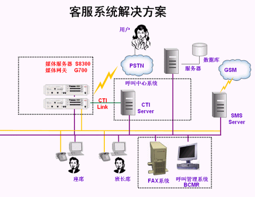 - 采用AVAYA S8300交換機(jī)做為客戶服務(wù)中心的核心電話接入平臺,系統(tǒng)中配置CTI接口模塊和內(nèi)置的自動呼叫分配軟件包。