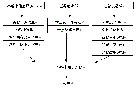 潤能公司小秘書服務(wù)中心每日處理各種公告信息,重大財經(jīng)信息等,并主動發(fā)送到位于券商營業(yè)部的小秘書智能化系統(tǒng)中,由系統(tǒng)對信息進(jìn)行個性化處理后發(fā)送給客戶。