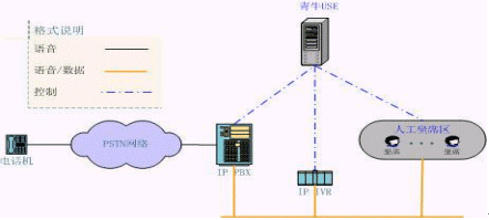 青牛IVR集群方案將原來放在PBX后面的IVR"前移",PBX的LINK只有和坐席相關的信息,大量的和IVR相關的呼叫信息被剝離出去,由青牛網絡IVR直接自行處理。根據統(tǒng)計,自動業(yè)務的呼叫量在整個客服中心呼叫量中占大多數,當呼叫量越大的時候,該方案的優(yōu)勢就越明顯。