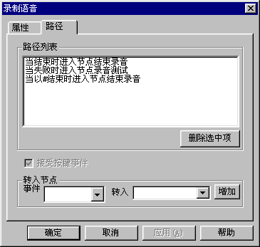 · 超時 // 例如,播放完語音后都要設置一段等待時間,在這段時間內(nèi)用戶沒有輸入觸發(fā)節(jié)點跳轉(zhuǎn)的按鍵,就被認為是超時。