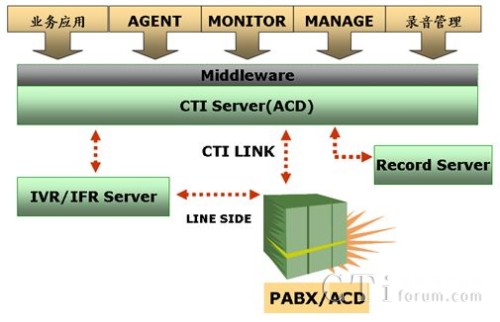 聯(lián)絡(luò)中心主要由電話呼叫分配(PBX/ACD)、計(jì)算機(jī)電話集成(CTI)、交互式語音應(yīng)答(IVR)、實(shí)時(shí)錄音和自動外撥等組成,逐漸形成了一個(gè)復(fù)雜的多系統(tǒng)異構(gòu)平臺。