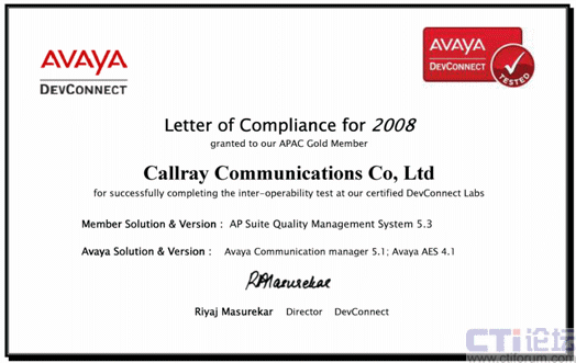深圳市友鄰?fù)ㄓ嵲O(shè)備有限公司的AP Suite呼叫中心質(zhì)量管理系統(tǒng)經(jīng)過測試,通過了AVAYA DevConnect 的認(rèn)證。