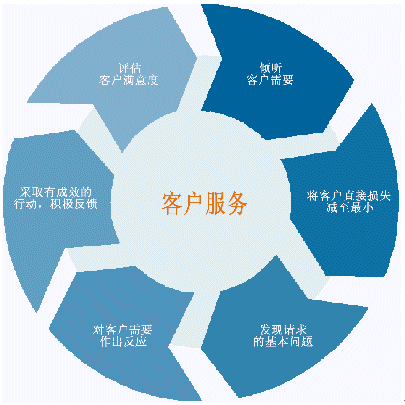 客戶服務(wù)不僅限于把公司提供給客戶使用?蛻舴⻊(wù)是與客戶交互的一個(gè)完整過(guò)程,包括聽取客戶的問(wèn)題和要求,對(duì)客戶的需要作出反應(yīng)并探詢客戶新的需求。我們真的不能將其看成一個(gè)簡(jiǎn)單的過(guò)程?蛻舴⻊(wù)可以用一個(gè)復(fù)雜的循環(huán)來(lái)表示,其中不僅僅包括了客戶和客戶服務(wù)部門,實(shí)際上包括了整個(gè)公司,即把公司整體作為一個(gè)受客戶需求驅(qū)動(dòng)的對(duì)象。