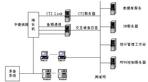 并且系統(tǒng)語音、傳真、數(shù)據(jù)的存取,全部通過局域網(wǎng)以IP包的形式進行,與ACD方式相比,省去了CTI、IVR與前置排隊機之間的復雜接口,而局域網(wǎng)寬闊的帶寬,靈活的組網(wǎng)方式則保證了系統(tǒng)可方便地擴容升級。