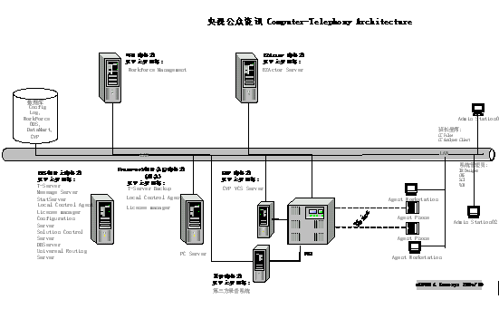 改建后的CCTV公眾資訊中心系統(tǒng),配置了帶冗余備份的Genesys Framework基本平臺及ERS企業(yè)路由解決方案、WFM人力資源管理解決方案、GVP自動語音應答解決方案和EZactor呼叫中心CRM平臺。