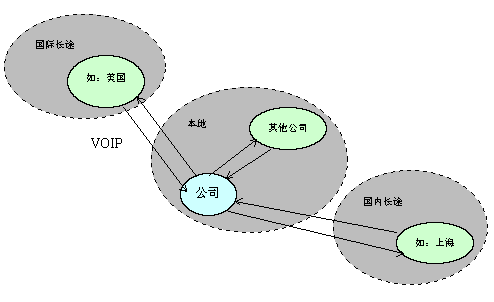 (2) 對(duì)于國(guó)內(nèi)其他公司或個(gè)人:可以利用VOIP或長(zhǎng)途接入公司,再轉(zhuǎn)入國(guó)內(nèi)長(zhǎng)途或者國(guó)際長(zhǎng)途。