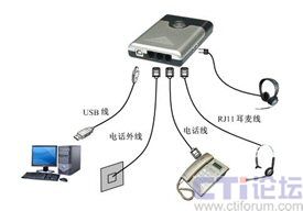 “話務(wù)通”設(shè)計新穎,接口包括電話線路接口、電話機(jī)接口、耳機(jī)接口和USB通信接口。配置立體聲揚(yáng)聲器和環(huán)型提示燈,提供聲光提示。“話務(wù)通”能夠提供IP網(wǎng)絡(luò)電話,自動應(yīng)答,自動外撥,來電彈屏,語音錄放,語音留言等功能。