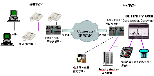 DEFINITY IP 解決方案把AVAYA的功能強(qiáng)大的通信應(yīng)用和能力擴(kuò)展到新的IP環(huán)境中,DEFINITY IP 解決方案集 DEFINITY ECS系統(tǒng)和IP 網(wǎng)絡(luò)于一體。采用該方案,用戶將獲得 DEFINITY ECS系統(tǒng)的可靠性、功能性和豐富的應(yīng)用,同時(shí)獲得IP網(wǎng)絡(luò)的靈活性和無(wú)所不在的普及性。而且,用戶還將保護(hù)在現(xiàn)在語(yǔ)音/數(shù)據(jù)基礎(chǔ)設(shè)施以及用戶和管理員培訓(xùn)方面的投資。