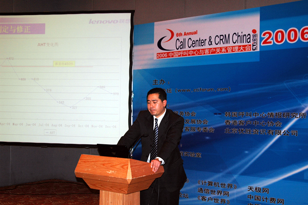 2006年4月3日至5日,2006中國呼叫中心與客戶關系管理大會在北京國際會議中心隆重召開,以下是聯(lián)想公司質(zhì)量總監(jiān)鄭浩專題演講實錄:鄭浩:大家下午好,我是聯(lián)想客戶聯(lián)絡中心的鄭浩。今天非常榮幸能夠跟各位共同探討客戶聯(lián)絡中心的運營方法。希望我對聯(lián)想的客戶聯(lián)絡中心的介紹能夠給大家一些啟發(fā)和幫助。