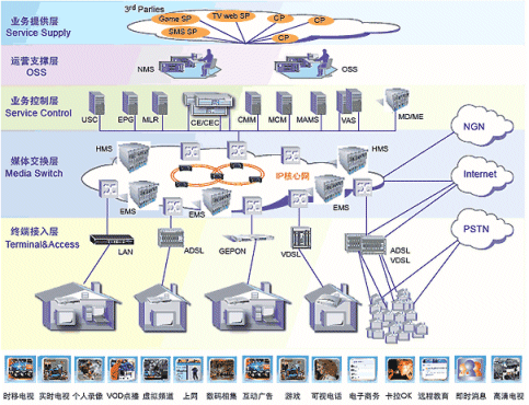 - 開展的節(jié)目:時(shí)移電視、直播電視、點(diǎn)播、寬帶、游戲、IP電話等;