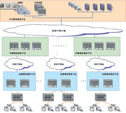 奔流(RollingStream)系統(tǒng)可以支持百萬級(jí)別的用戶規(guī)模,支持3級(jí)和多級(jí)部署架構(gòu)。包括中心節(jié)點(diǎn)(CMS)、區(qū)域匯聚節(jié)點(diǎn)(HMS)以及邊緣服務(wù)節(jié)點(diǎn)(EMS)。奔流(RollingStream)系統(tǒng)對于寬帶IP網(wǎng)絡(luò)的容忍度是很高的,可以支持各種網(wǎng)絡(luò)承載形式,也可支持各種接入方式。如LAN接入、DSLAM接入、GEPON接入。對于IPTV系統(tǒng),可建設(shè)專網(wǎng),CMS和HMS、EMS直接相連,也可以旁掛在城域網(wǎng)上。另外,無論P(yáng)PPoE還是DHCP上網(wǎng)方式都可以支持。