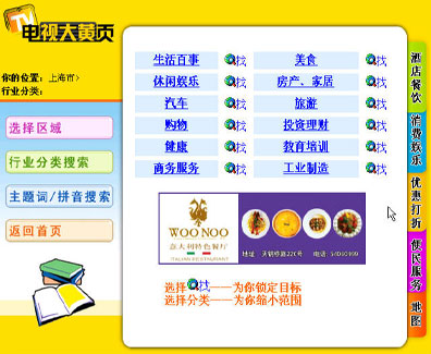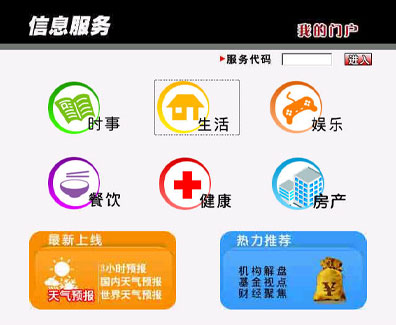 在上海IPTV提供的業(yè)務(wù)中,信息服務(wù)也是眾多用戶喜聞樂見的一項(xiàng)業(yè)務(wù),內(nèi)容覆蓋廣泛。它提供了時事、生活、娛樂、餐飲、健康、房產(chǎn)等信息,其中“時事”一欄呈現(xiàn)了新浪上海熱線實(shí)時傳遞的全球最新新聞資訊,讓老百姓“手握遙控器,便知天下事”,“健康”一欄更是一網(wǎng)打盡上海地區(qū)醫(yī)療機(jī)構(gòu)的信息資訊,特色?扑阉鳛橛脩籼峁┍憬莸尼t(yī)療信息服務(wù),“房產(chǎn)”中上海地區(qū)各類二手房產(chǎn)訊息一應(yīng)俱全,價(jià)格、地段、房型等應(yīng)有盡有。