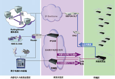 圖1 奔流RollingStream廣電互動(dòng)數(shù)字電視解決方案系統(tǒng)架構(gòu)