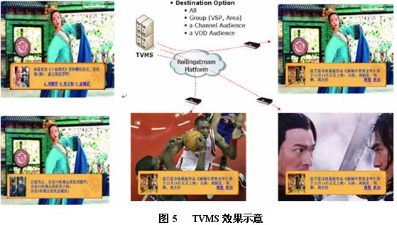 TVMS可以支持用戶間通過電視屏幕顯示手機短信息;支持向全頻道發(fā)送信息,如政府公告、天氣預(yù)警、水電費用催繳等等;也可以向特定人群發(fā)送廣告信息;廣電運營商可通過該功能開展互動娛樂業(yè)務(wù)。