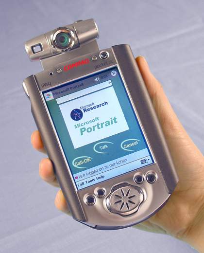微軟的“Portrait 2.2”是為移動(dòng)視頻通信研制的一種研究性試驗(yàn)軟件。 這個(gè)軟件支持.NET信使服務(wù)、會(huì)話啟動(dòng)協(xié)議和在電腦、袖珍電腦、掌上電腦和智能手機(jī)上的互聯(lián)網(wǎng)定位服務(wù)。