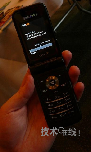 Tellme by Mobile服務現(xiàn)在為β版。首先,在手機上運行的、約200KB的J2ME支持客戶端軟件錄制用戶說出的檢索關(guān)鍵詞。然后,將錄制好的約2~3KB的語音數(shù)據(jù)轉(zhuǎn)發(fā)至Tellme運營的服務器。接著,服務器端便會識別來自語音文件的檢索關(guān)鍵詞,實際執(zhí)行檢索處理,并將結(jié)果以文本數(shù)據(jù)的形式返給客戶端。另外,還可將檢索結(jié)果與在線地圖等信息聯(lián)動。Tellme稱,利用了可獲得適于小屏幕手機的檢索結(jié)果的算法。