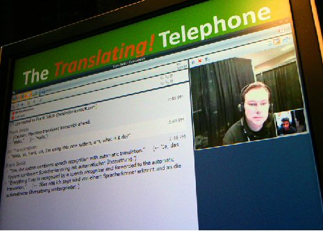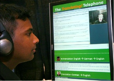 Thambiratnam說:“當(dāng)多種不同背景的人需要一起交流時(shí),我們的技術(shù)就能提供非常大的便利!盩hambiratnam用同聲傳譯電話展示了這樣一種的情景:Thambiratnam說英語(yǔ),他要給他的德國(guó)籍經(jīng)理Frank