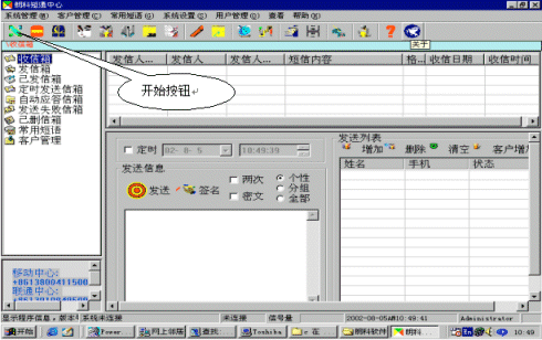 如果沒有上述兩個畫面,則應(yīng)雙擊桌面的前臺和后臺圖標(biāo),用以啟動該程序,也可以選擇"開始" --》廣播短信平臺--》前臺(后臺)實(shí)現(xiàn)啟動。