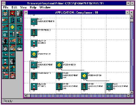 Enterprise 2002 圖形化腳本編輯器軟件工具可供Enterprise 2002的用戶使用。該圖形化編輯器是一種基于圖標(biāo)的呼叫流程管理工具,可用來查看和編輯通信腳本文件中所包含的呼叫流程。該工具為用戶提供了一個圖形化用戶界面,可使其通過在Windows應(yīng)用中點擊和拖拽鼠標(biāo)來創(chuàng)建和修改腳本文件。在操作過程中,用戶可隨時以輸入關(guān)鍵詞方式獲得相應(yīng)的幫助信息。