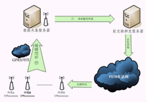 1X數(shù)據(jù)網(wǎng)絡的遠端模塊,用來傳輸設備的運行參數(shù),這種設備數(shù)量多至上萬個。由于GPRS或CDMA1X實時在線傳輸費用過于昂貴,因此設備數(shù)據(jù)采集需要每天定時有喚醒激活機制。采用軟交換的群發(fā)呼叫功能,可以定時大容量地呼叫GPRS或CDMA1X所在位置各手機號碼,以產(chǎn)生的鈴流來觸發(fā)遠程設備啟動GPRS或CDMA1X并傳輸數(shù)據(jù),確保遠程設備的正常運作。
