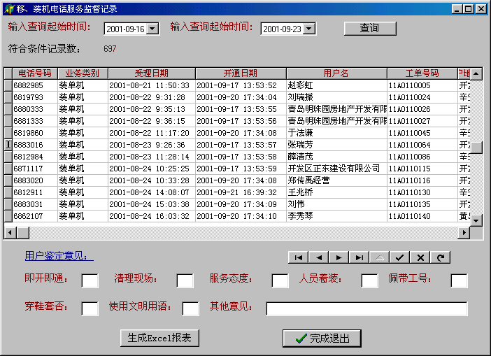 裝、移機服務監(jiān)督回訪實例: