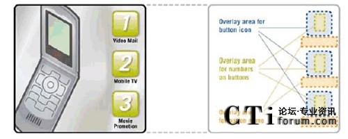 互作用提出了更進一步的挑戰(zhàn)。能夠使用戶訪問多個 TV 頻道以及獲得其他服務的視頻門戶,是一個很好的研究實例。視 頻門戶顯示了基于每個用戶活動、訪問權(quán)限、服務描述等的服務菜單。一般來說,菜單是有限列表,用戶通過在手持終端 按下相應的鍵來進行選擇 (圖2.通過示意圖說明了動態(tài)菜單的映射方法)。為了創(chuàng)建菜單,應用程序控制了基礎(chǔ)架構(gòu),而該 基礎(chǔ)架構(gòu)動態(tài)地生成了有限列表,并在當前的視頻流頂端顯示為一個靜態(tài)覆蓋圖。相同技術(shù)可用于顯示基于用戶活動或位 置進行品牌和廣告宣傳的 logo 或文本。