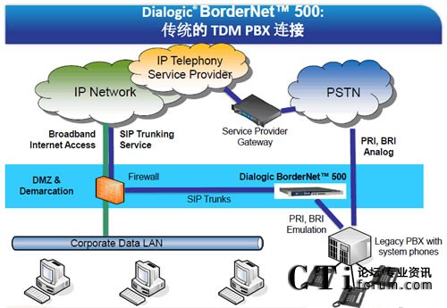 Dialogic® BorderNet™ 500:傳統(tǒng)的TDM PBX 連接