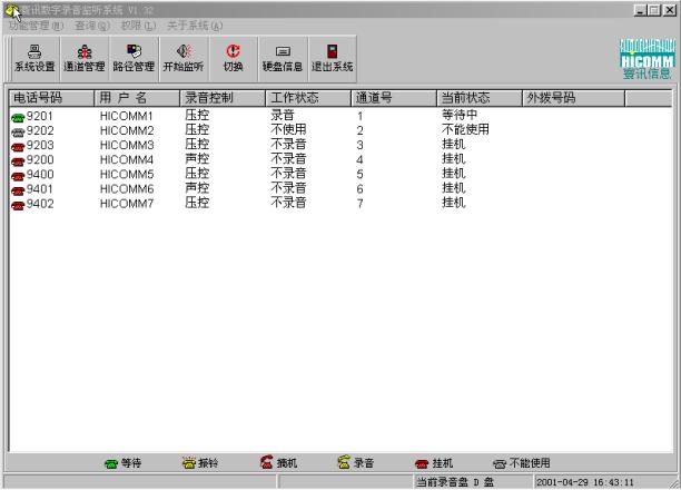 系統(tǒng)管理員根據(jù)權(quán)限可以對(duì)系統(tǒng)的任一路電話進(jìn)行監(jiān)聽,此時(shí)被監(jiān)聽的說(shuō)話雙方絲毫不會(huì)有所察覺,
