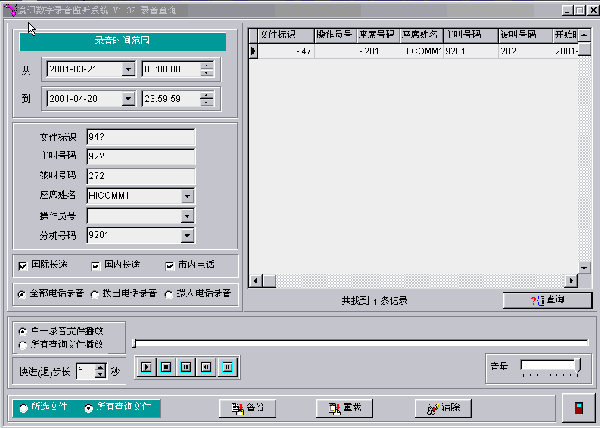 可以對(duì)錄音文件進(jìn)行備份,并可對(duì)選定的一條或一批文件進(jìn)行刪除。
