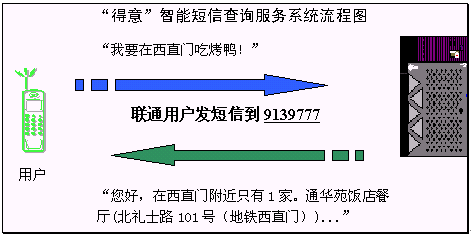 短信服務(wù)商只需通過(guò)"得意"口語(yǔ)對(duì)話(huà)系統(tǒng)與知識(shí)庫(kù)(或者相關(guān)的數(shù)據(jù)系統(tǒng))相聯(lián)接,就能徹底拋開(kāi)厚重的手冊(cè)和復(fù)雜的編碼,代之以口語(yǔ)化的自然語(yǔ)言短信。原來(lái)無(wú)法開(kāi)展,或者用戶(hù)難以使用的智能互動(dòng)查詢(xún)服務(wù)都能快捷、簡(jiǎn)單地開(kāi)通,為用戶(hù)提供前所未有的、自然的、互動(dòng)的信息服務(wù),如旅游交通、吃喝玩樂(lè)、金融證券、交友網(wǎng)聚、智力競(jìng)猜、公共服務(wù)等等各個(gè)具體領(lǐng)域的服務(wù)。