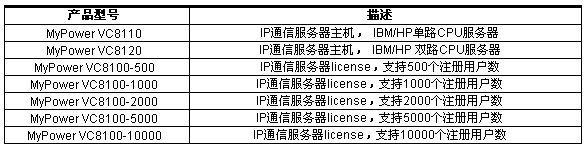 MyPower VC8100 IP通信服務(wù)器負(fù)責(zé)網(wǎng)關(guān)、IP電話機(jī)以及軟電話的注冊、號碼路由、增值業(yè)務(wù)提供等功能,基于MyPower VC8100的IP通信解決方案可以給用戶提供:IP語音通信、IP視頻通信、IP傳真通信;可以提供語音郵件、自動總機(jī)、號碼攜帶、按名字呼叫、搜尋組等增值應(yīng)用;可以提供呼叫轉(zhuǎn)接、轉(zhuǎn)移、停泊、代答、保持等補(bǔ)充語音業(yè)務(wù)。