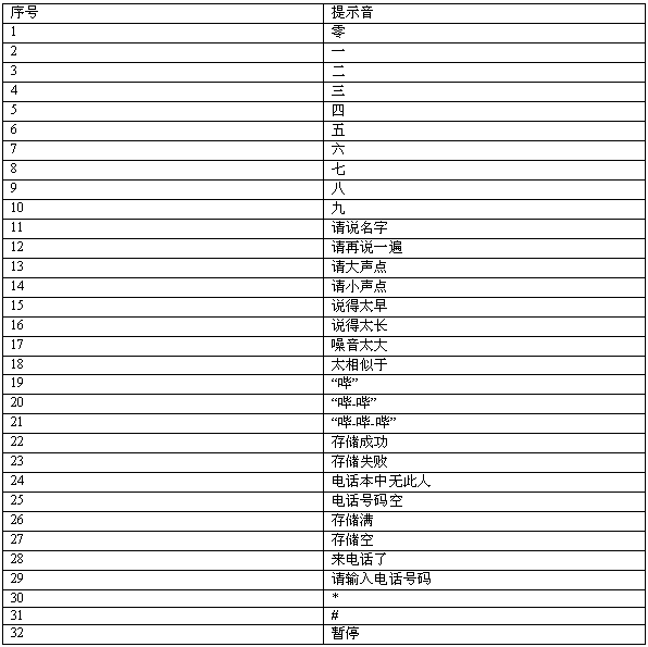1-人名訓(xùn)練 2-人名識別 3-語音電話本 4-語音合成 5-控制功能 6-調(diào)試 7-DTMF 8-音樂 9-實(shí)時錄音/回放 10-來電播報(bào)