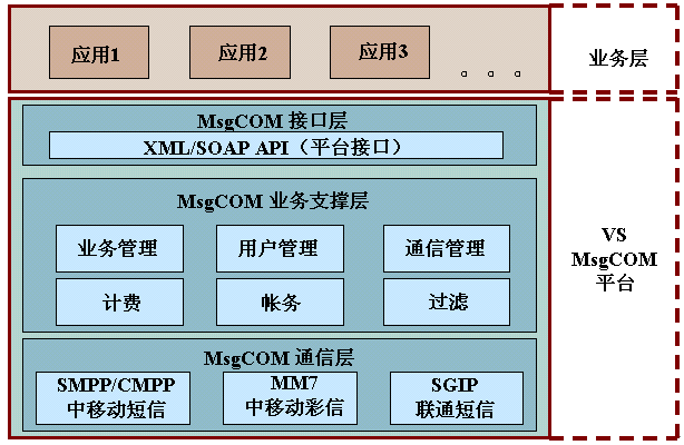 - 業(yè)務(wù)層:運行在VS MsgCOM的各類業(yè)務(wù)應(yīng)用。