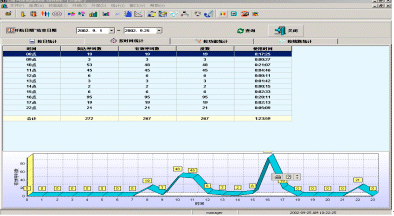 | 按時間統(tǒng)計 | 按照時間對來電以及計費點進行統(tǒng)計,并寫從下端的立體折線圖中看到所選的日期內各個時間段的呼叫分布數。 |