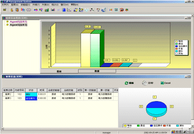 座席狀態(tài)實時監(jiān)控圖形顯示;線路狀態(tài)實時監(jiān)控圖形顯示;按時間以及不同條件進行查詢的完善的歷史數據分類分析及統(tǒng)計;以統(tǒng)計報表形式提供中心各狀態(tài)及業(yè)績信息作為考評依據;按Excel方式輸出報表,提供進一步編輯功能。其所生成的上百張報表,可以協助企業(yè)有效管理資源,檢查成本,預測改善現有運作的潛在需求。