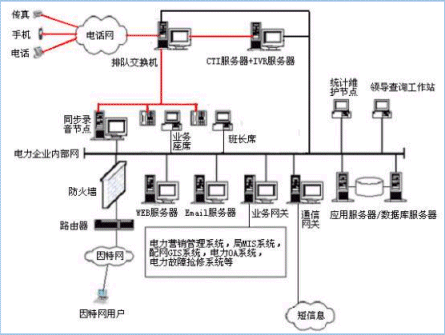 。。用戶利用電話、傳真、電子郵件、因特網(wǎng)、手機(jī)、網(wǎng)絡(luò)電話等撥打某一特服號碼(如95598)進(jìn)入電力多媒體客戶服務(wù)中心系統(tǒng),本系統(tǒng)依托電力企業(yè)各類業(yè)務(wù)技術(shù)支持系統(tǒng),通過人工受理或自動語音服務(wù)等方式為各類客戶提供全天24小時(shí)不間斷的電力服務(wù);形成了對外服務(wù)于用戶的無形窗口,對內(nèi)管理、分析、決策系統(tǒng)相結(jié)合的新型客戶服務(wù)中心。