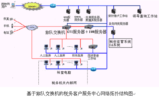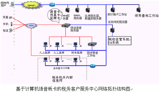 對于20個以下人工座席的中小型稅務(wù)客戶服務(wù)中心系統(tǒng),則建議使用基于計算機(jī)語音板卡的方式,可以減少投資,同時具有良好的系統(tǒng)性能;對于大型的稅務(wù)客戶服務(wù)中心系統(tǒng),可選用排隊交換機(jī)作為語音接入設(shè)備,以保障系統(tǒng)的高可靠性和穩(wěn)定性;大大提高了系統(tǒng)的適應(yīng)面。